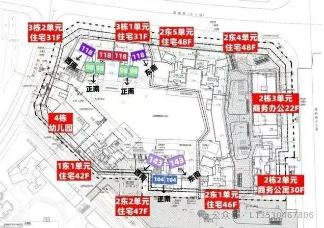 这次准备推售百合世纪广场二期(B-02地块),总占地面积约3.6万㎡,总建筑面积约27.03万㎡,计容建筑面积约19.38万㎡,共由3栋7个单元组成,总高是31-48层的住宅,其中1栋1单元住宅42F,1栋2单元住宅47F,2栋1单元住宅46F,2栋4/5单元住宅48F,3栋1/2单元住宅31F,另外2栋2单元公寓30F,2栋3单元商务办公楼22F,4栋是1所九班制幼儿园。