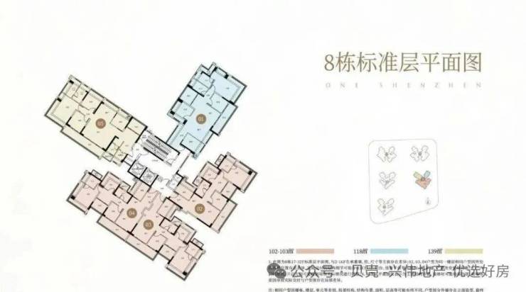 本次推出的是8栋,建面约102-118-139㎡户型3个产品,适应家庭不同阶段的需求变化,拔墙设柱设计、分户S墙、创新LDKC内外亲子双区等,深圳建筑新规首发项目之一,超高综合实用率。