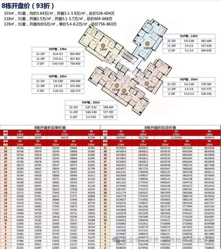 103㎡,91套,均价5.64万/㎡,开盘5.1-5.9万/㎡,总价526-604万。