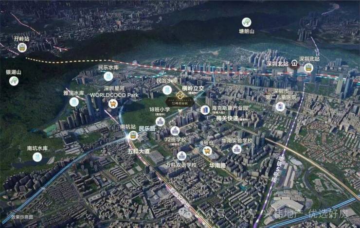 生态环境,坐拥塘朗山、银湖山两大山脉的自然资源,近享民治水库、民乐水库、雅宝水库、南坑水库四大湖景,超核“未来之眸”绿芯公园、民治体育公园、红木山郊野公园等九大生态公园环伺,深圳城芯难得森态胜景,满目盛景尽斑斓。