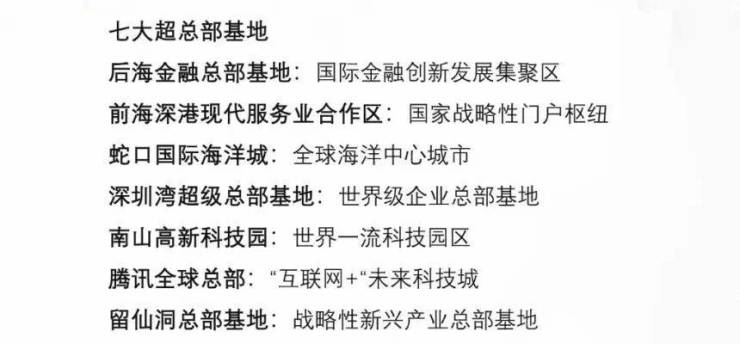 -七大全球总部基地,激荡全球资本的湾区超核,由总部经济带串联,吸引大批诸如腾讯、大疆、阿里巴巴等行业龙头企业,以及大批总部企业入驻,未来将吸引260万人才聚集。
