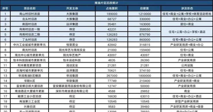 向南村旧改、南山村旧改、北头村旧改、南园村旧改,涉及多种业态,满足周边文体生活配套,将进入快速蝶变期。