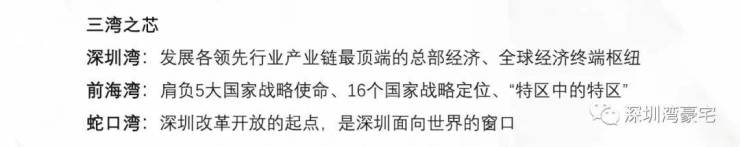-深圳三湾作为粤港澳大湾区、先行示范区双区核心载体,已建设成为独具特色的湾区城市新中心,在全球经济版图中占有重要一极。