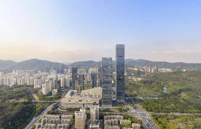 这个占地9.6公顷的项目功能广泛,位于室内购物中心上方的小镇中心商业和文化设施是活力体验的核心,西侧配以雅致实惠的精品酒店(无印良品酒店),南北面向初创企业和中端市场的多层办公设施,东、西两侧的人行天桥与莲花山、笔架山相连,形成了户外随机互动的空间网络。东侧的两座甲级办公大楼为开发主体,景观资源雄厚,楼盘灵活高效,设施配备上乘,为国内外优质大型企业总部和区域中心所追逐。