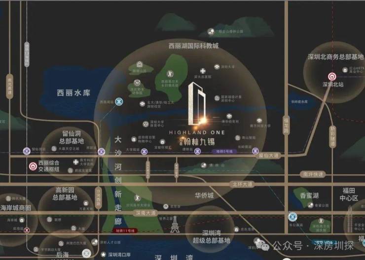 留仙大道正席,紧邻地铁5号线塘朗站,4/5/7号线3轨环绕,毗邻“三纵五横”主干道,瞬息通达全城。西丽高铁站(建设中)、深圳北站两大枢纽环绕,拥有世界交通能级。