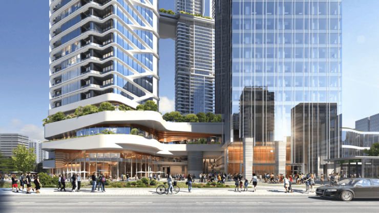通过空中连廊系统,500步直达32万㎡的体育中心(改造中),改造后的体育中心将成为世界一流体育中心,并成为业主的社区配套。