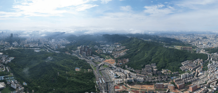 尽享自然景观与城市景观,北侧靠福田“大靠山”塘朗山山脉的银湖山,西侧靠近笔架山公园、深圳市体育中心以及南北贯穿福田的环中心公园,西南可以遥望繁华的福田中心区及平安大厦,东南遥望罗湖CBD。