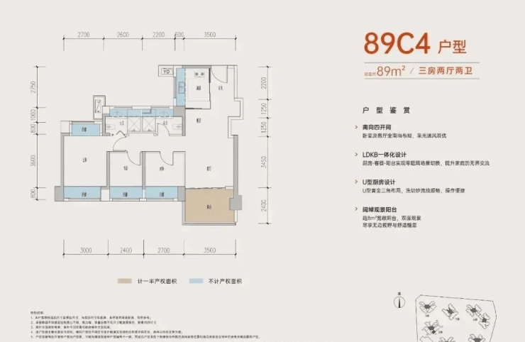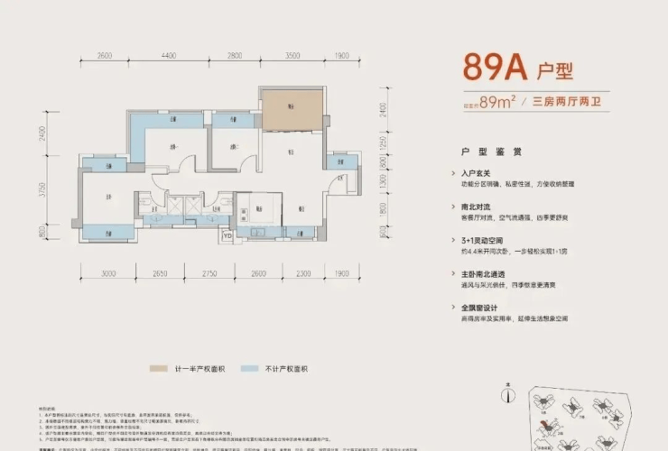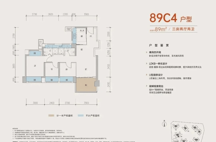 本次加推2栋258套,89㎡三房两卫和108-128㎡四房两卫户型。