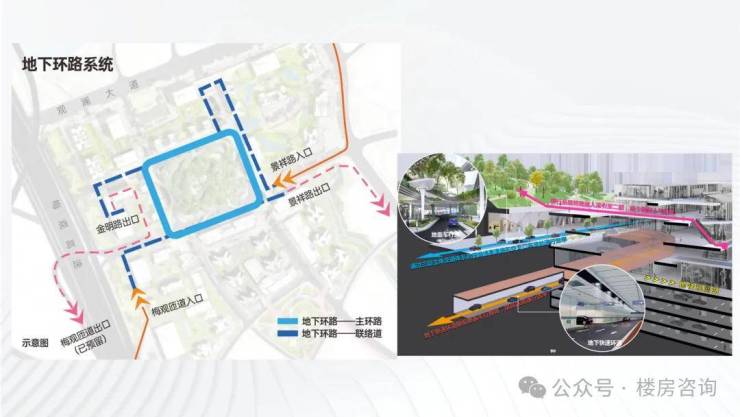 同级“前海地下路网”市级规划,首创梅观高速直通小区,经由地下环道畅连各地块车库,速抵福田中心区,高效出行;