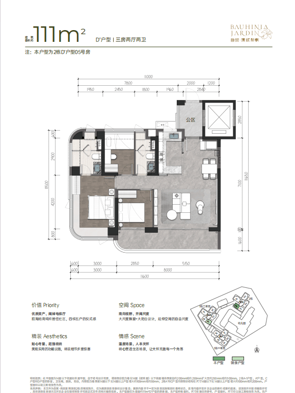 • 建面约111㎡宽厅阔景 灵动三房