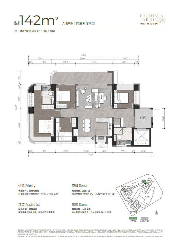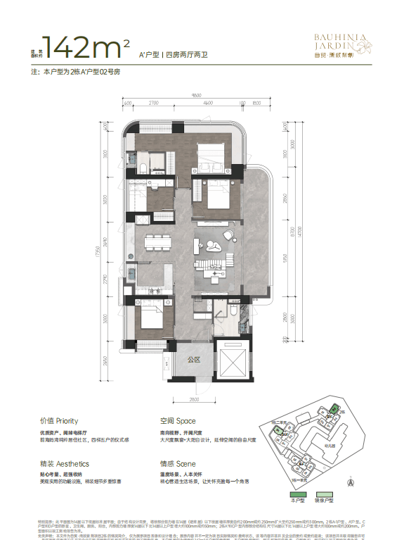 • 建面约142㎡南北方厅 阔景四房