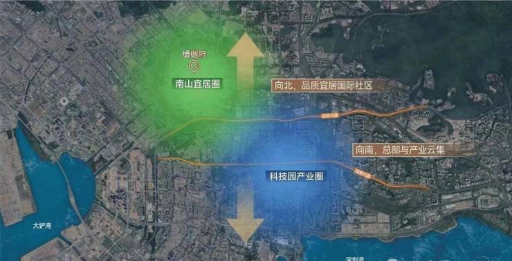 缙樾府落位深湾核芯,周边三轴拱卫,深圳五大顶级总部基地环绕,联动西丽高铁新城增长极,形成立基于深湾之上的产业价值能级跃升。