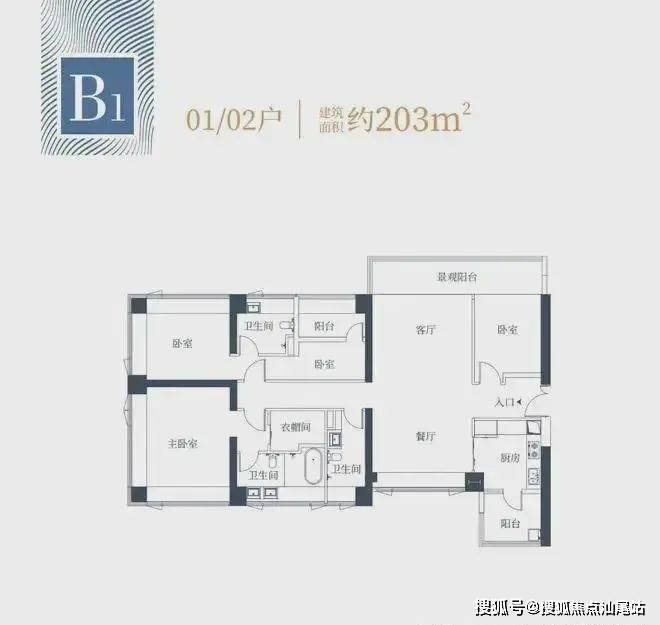 1栋二单元B1户型:面积约为203㎡