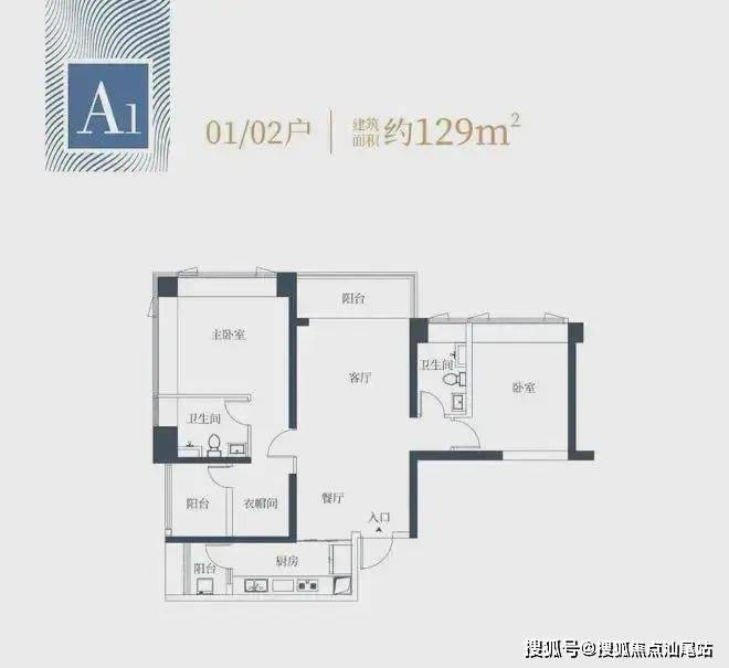 1栋一单元A1、A2户型:面积约为129㎡