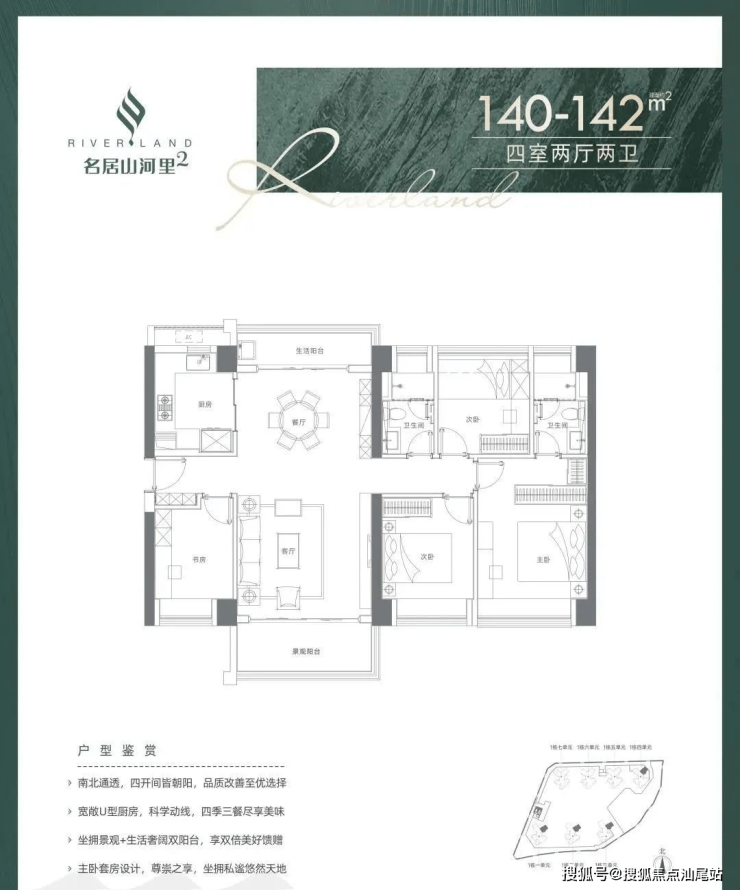 140-142平4房2厅2卫:南北通透,不含赠送使用率在74%