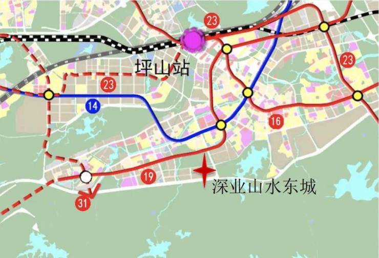 碧岭是市区进入坪山区的门户地带,片区不仅有即将开通的14号线/16号线,未来还规划有19号线、23号线以及31号线,5条地铁全面打通碧岭。