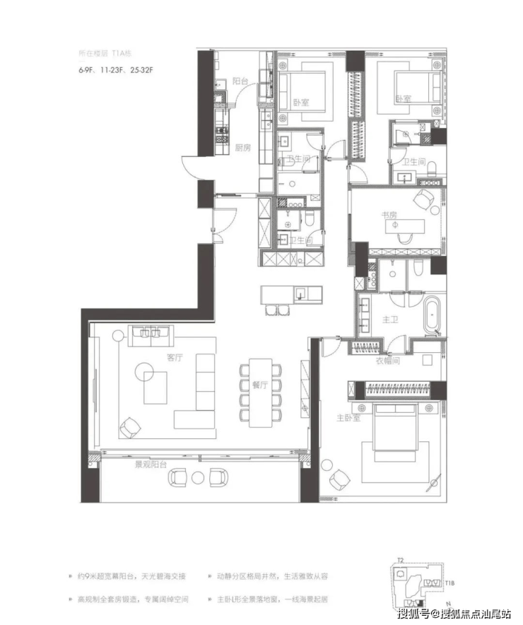 面积:1栋一二单元约230㎡ 3房2厅3卫