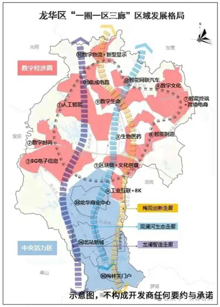 在深圳十四五规划中,明确龙华与大前海中心、福田-罗湖中心,并列成为深圳三大“都市核心区”。龙华区南连福田,北接东莞,承南启北,贯通东西,成为湾区之核的中轴新城。
