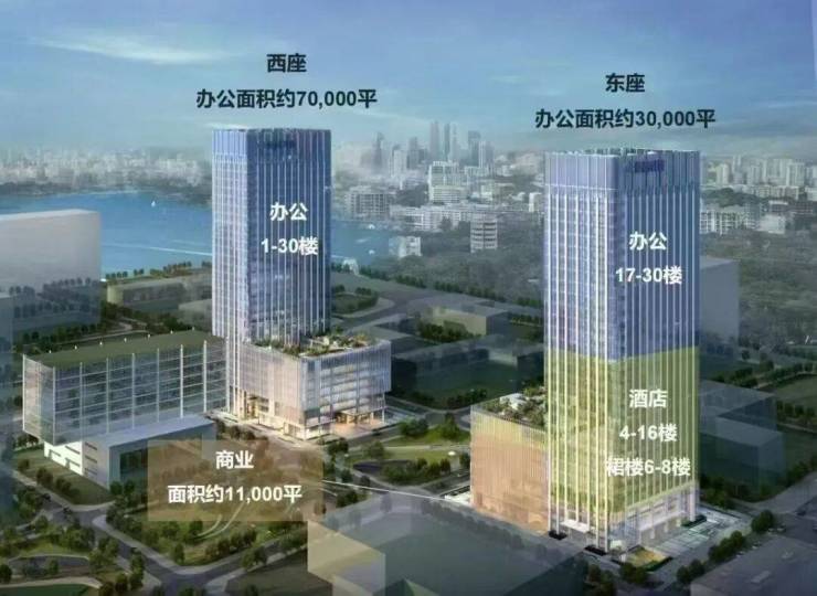 办公面积:西座整栋建筑的办公面积约为7万平方米,东座17至30层的办公面积约为3万平方米