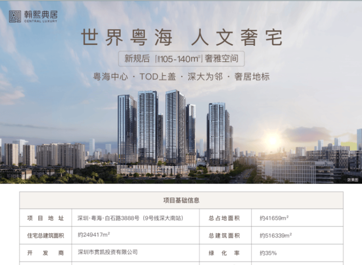 翰熙典居,逾50万㎡地标级奢居综合体,2025年深圳市重大建设项目之一。项目三个地块一次性整体开发,彰显枫叶集团雄厚实力,及打造中心人文奢宅、城市地标之作的恢弘之志。