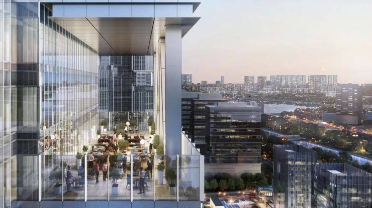 专属空中露台,满足企业休闲、活动、商务多元功能;紧邻中央绿轴,绿意和鲜氧给工作和商务带来更多活力。