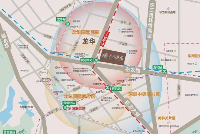 距离深圳北站近约2.5公里,同时,又位于龙华国际商圈内,依托时代发展,板块迅速崛起,未来价值不可估量。