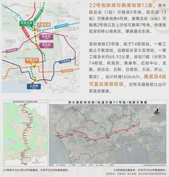 项目距离地铁口仅约200米,乘坐地铁22号线(在建中,预计2028年通车)南行,5站到福田,9站直达福田上沙站,还可便捷换乘5号线、4号线、2号线、7号线,北行直抵东莞;乘坐地铁33号线(在建中,预计2026年通车)5站可直达深圳机场