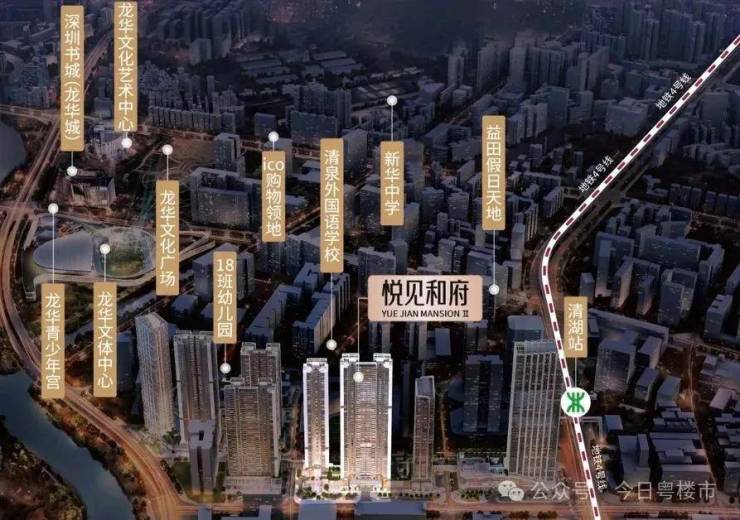 距离4号线清湖地铁站A1出口100多米的距离,5站深圳北,8站福田;龙华还有22号线、25号线、27号线在建。