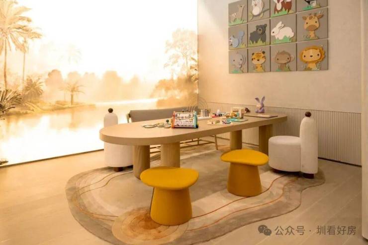 约820㎡“森友寻宝会”儿童乐园按年龄分区:0-3岁宝宝能玩安全的摇摇马、传声筒;3-6岁孩子可滑滑梯、玩平衡桥;6-12岁少年能挑战攀爬网、森林树屋。EPDM防摔地垫+圆角设计,家长不用时刻盯着;旁边还有“亲子菜园”,周末带孩子浇水、摘菜,比去游乐园更有意义。