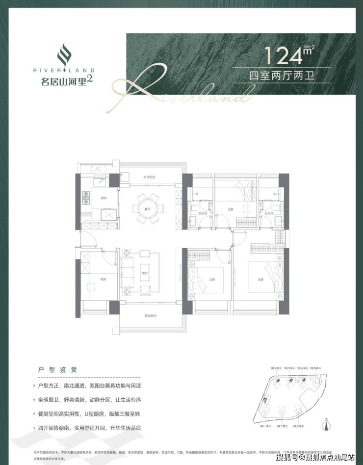 124平4房2厅2卫:南北通透,不含赠送使用率在74%