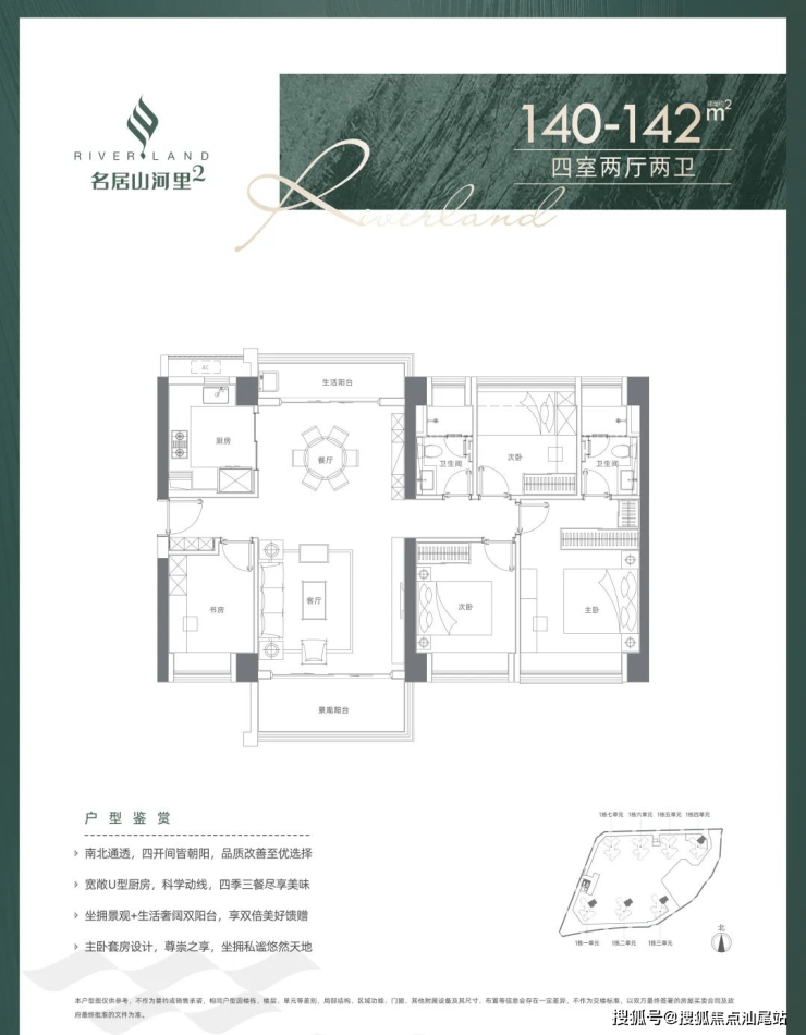 140-142平4房2厅2卫:南北通透,不含赠送使用率在74%