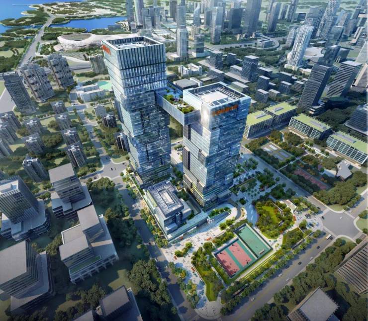 深圳金地威新中心项目为金地商置集团全自持,不对外出售。深圳金地威新中心总建面达28万方,由3座塔楼组成,包含两座超高层双子塔写字楼机一座总部办公楼,并着力打造5.7万方的生态体育公园及1.5万方的精致商业,在产办空间焕新与城市绿色生态发展之间进行了多元化结合: