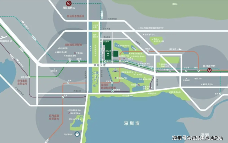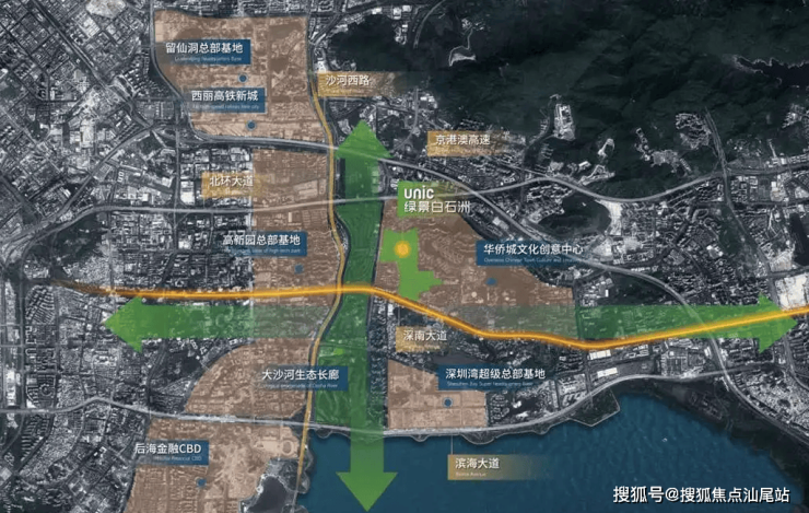 绿景白石洲位于深圳核心位置南山区的华侨城片区,深圳城市发展主轴——深南大道与大沙河创新走廊十字交汇点,依托华侨城人文艺术城区,链接后海总部基地、深圳湾超级总部基地、留仙洞总部基地、高新园总部基地四大总部基地。