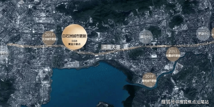 在伦敦、纽约这样的超级城市,其城市主轴的黄金分割点上均屹立着城市超级影响力的项目,如伦敦金丝雀码头、纽约中央公园,而深圳的发展主轴深南大道从罗湖中心到前海中心,绿景白石洲正处于黄金分割点之上。