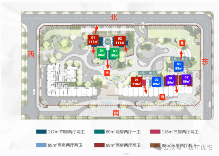 面积:80-89㎡3房2卫,112-118㎡4房2卫