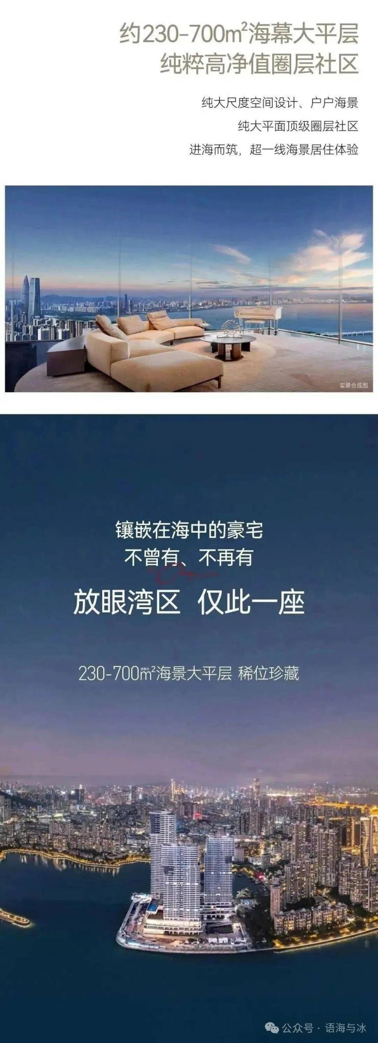 国际湾区唯一三面环海的海幕豪宅,天赋臻稀,独具匠心的建筑排布与户型设计,最大程度上保留了270°的海景视野。