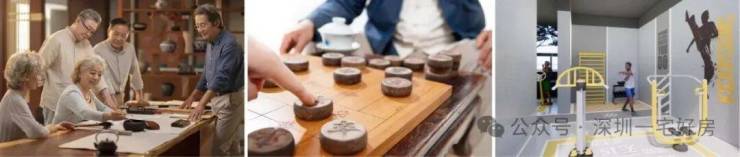 老年学堂、休闲棋牌、老年运动天地,架空层地下休憩茶室摆有桌椅茶具,阴雨天也能围桌下棋、喝茶畅谈;约1600㎡Y-life共享空间里还有老年学堂,能学书法、练太极,日子充实又自在。