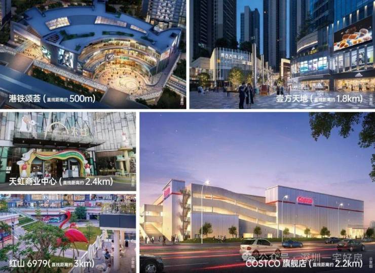 项目3公里范围内聚集了多个大型商业体,包括龙华壹方天地购物中心(约2公里) ,作为深圳最大购物中心之一,华南首家COSTCO、天虹商业中心、红山6979、中洲商业中心(规划中)等全系缤纷商业。