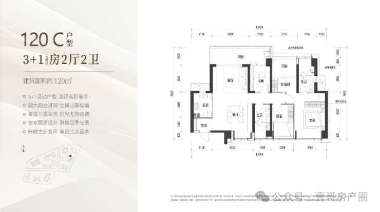 建面约120㎡的3+1房2厅2卫,
