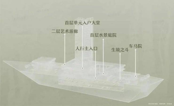 的分层布局:首层静谧水景庭院搭配阔绰车马院与酒店式落客区,强化归家仪
