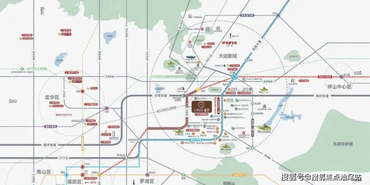 2公里范围内聚集约30万㎡商业,5公里内更辐射至百万平级商圈,包括星河COCO Park(含龙岗山姆会员店)、大运天地、SKY MALL、天光城等标志性商业体,满足高端消费及生活需求。