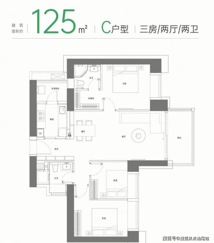 110㎡三房:经典竖厅设计,动静分明,保障隐私。卧室标配飘窗,观景阳台展开风景画卷。餐客一体化设计,连通阳台,畅享全家欢聚时刻。主卧私享化设计,配备独立卫浴和衣帽间,为居民提供私密、舒适的居住体验。