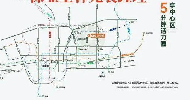 深业上林苑地理位置优越,位于福田核心区位,处金融贸易、生态景观、居住生活三条主轴交汇处。周边交通四通八达,已开通地铁6号线、7号线、9号线,另有规划中的24号线,出行便捷。同时,项目5分钟内可联通城市主干道北环大道、清平高速、坂银快速通道、深南大道、滨河大道等,20分钟内可抵达福田高铁站、深圳北站、深圳站、福田口岸、皇岗口岸等城市枢纽,交通优势显著。