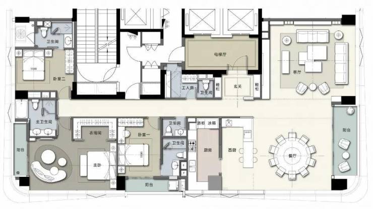 太子湾·鲸域作为公寓产品,具备了十分完善的居住功能,阔绰全功能主卧套间+父母套间(客人套间)+小孩套间+工人房,家族大宅的尊崇顶配,使产品的豪宅属性提高了一个档次。