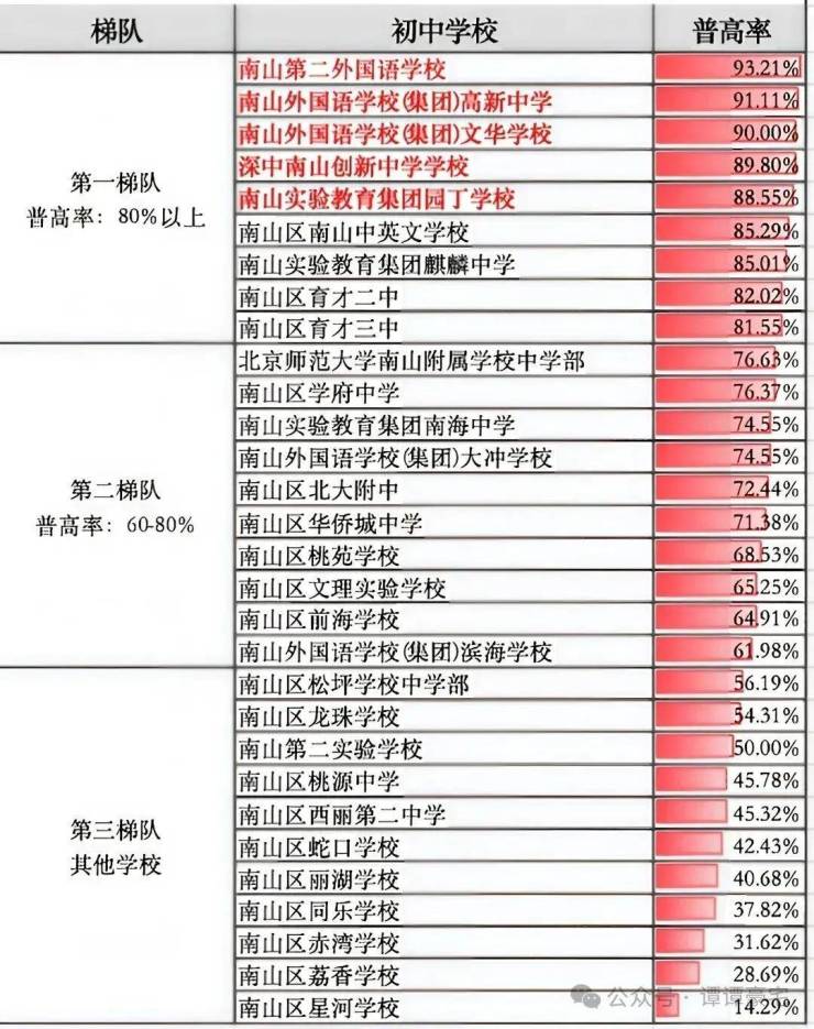 谭谭豪宅在网上找到了一份关于南山初中学校“普高率”的整理数据,想必很多读者此前已有所了解。统计数据显示,南山实验教育集团园丁学校最新普高率达88.55%,这一成绩不仅让该校跻身南山所有初中的第一梯队,即便置于全市范围衡量,也十分亮眼。