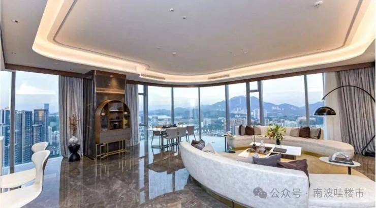 6、源系TOP级作品: 云端地标 环幕视野0约208米云端地标,270°环幕视野,坐拥地标级城市景观与稀缺山水资源:2定制超白三层中空LOW-E曲面玻璃搭配横向铝板线条,标识性的超流线立面建筑
