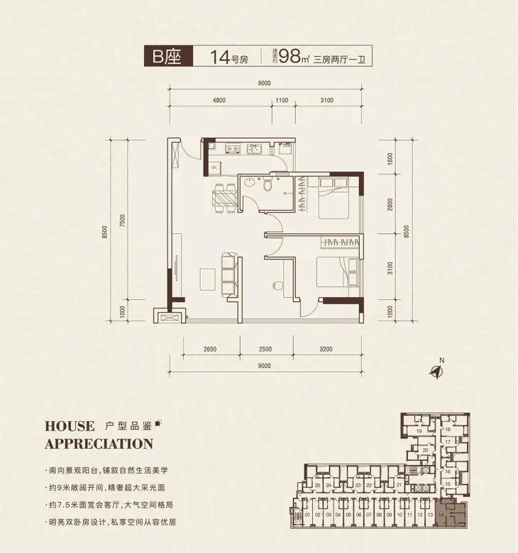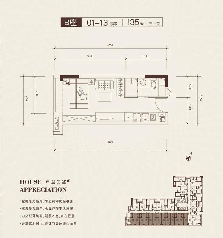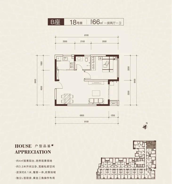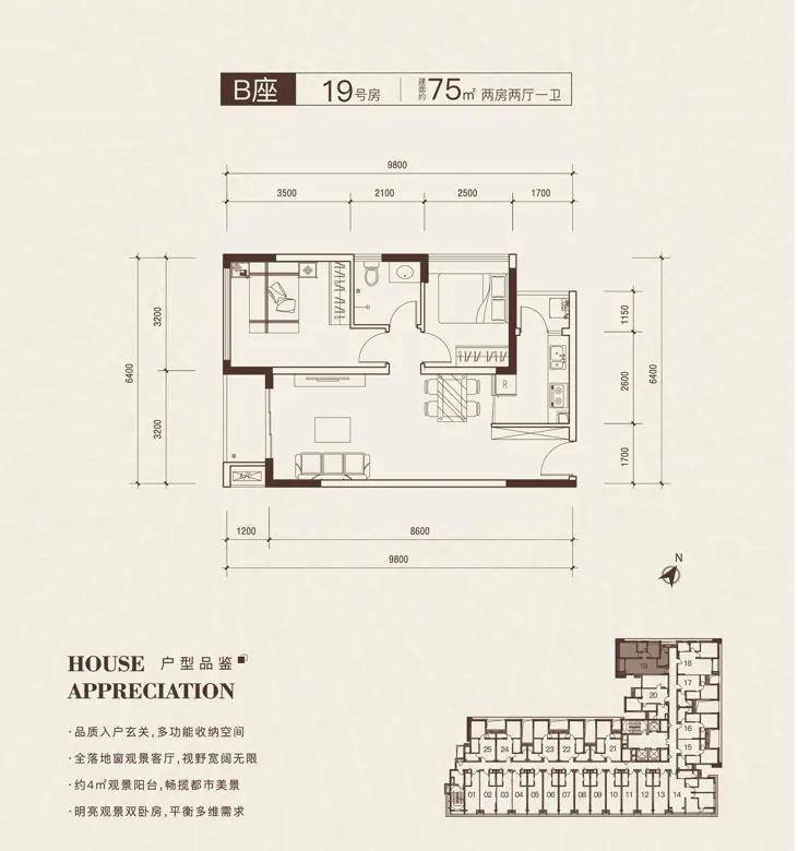 其中,公寓可售单元217套,主推建面约35-98㎡1-3房商务公寓,户户带阳台,采光通风性能佳。