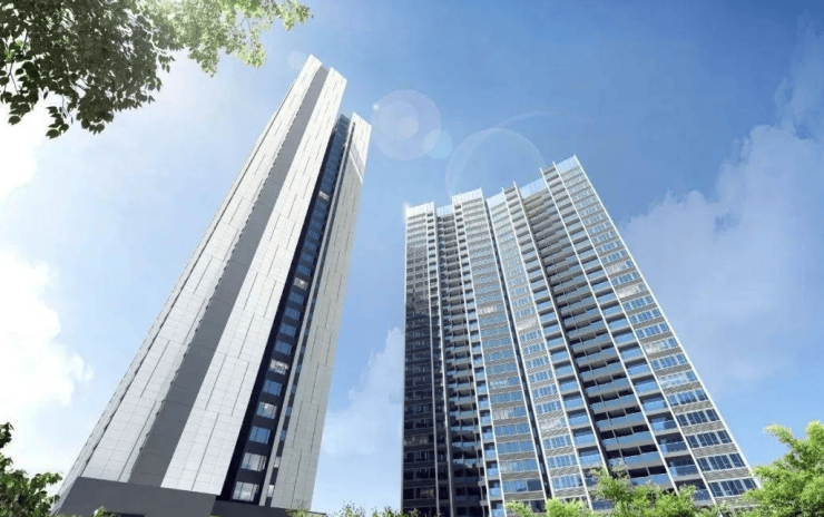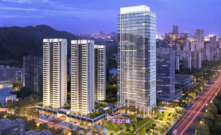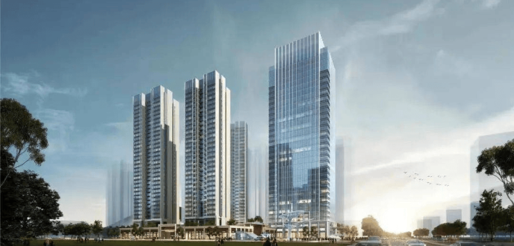 项目由5栋建筑主体组成,4栋住宅、1栋办公+公寓