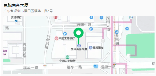 地铁交通:深圳-福田中心区-福华一路6号;高铁福田站8号出口;地铁1、3、8、11号线福田站、购物公园站。
