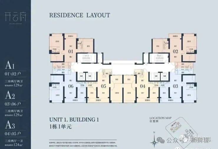 🔹1栋一单元A1、A2户型:面积约为129㎡